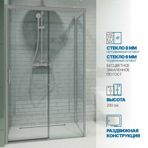 Душевой уголок GWMPSLRC863B 95x150 см, цвет фурнитуры хром матовый, цвет стекла бесцветный, стекло закаленное 8 мм / 6 мм