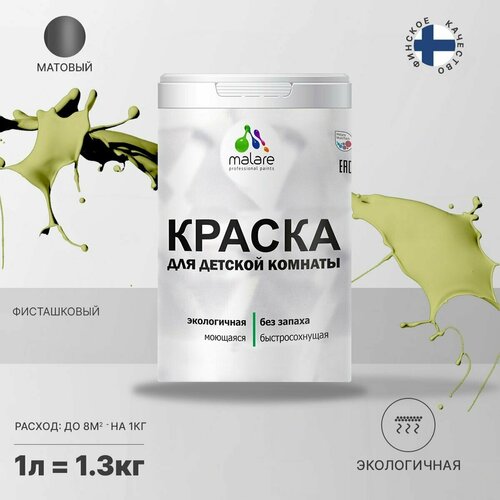 Краска Malare интерьерная для детской комнаты, для стен и обоев, для потолка, акриловая без запаха моющаяся матовая, фисташковый (1л - 1.3кг)