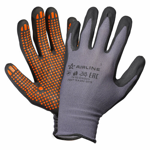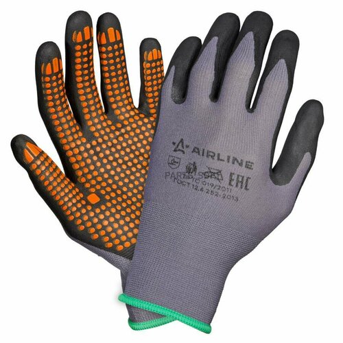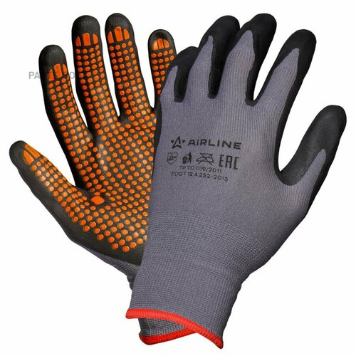AIRLINE ADWG101 Перчатки нейлоновые с нитриловым покрытием ладони (М) сер./черн./оранж.