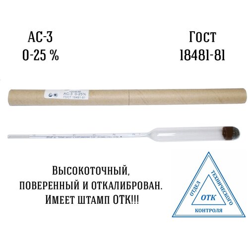 Ареометр сахаромер профессиональный АС-3 (0-25%) ГОСТ 18481-81