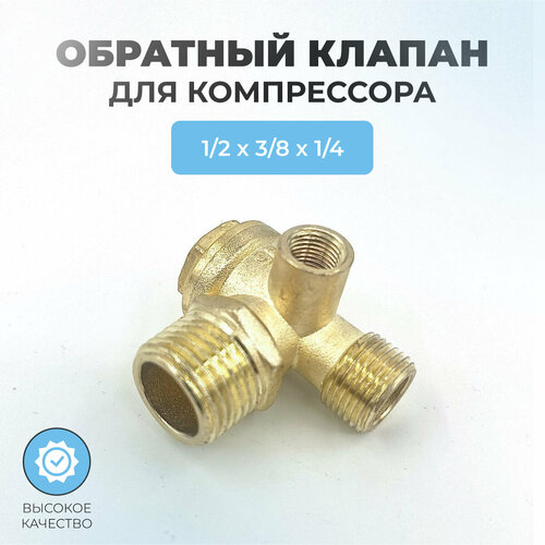 Обратный клапан для компрессора 05 - 1/2"нр х 3/8"нр х 1/4"вр (плоский)