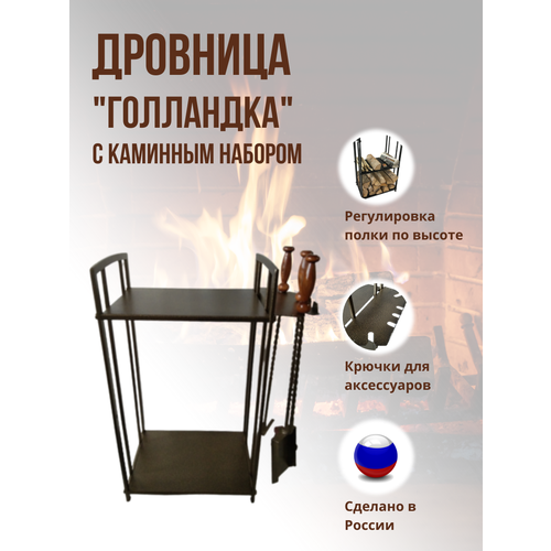 Благодатное земледелие Дровница металлическая Голландка с каминным набором Бронза