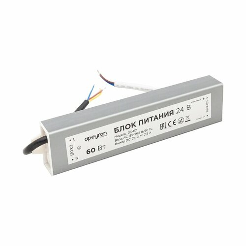Блок питания импульсный Apeyron 24В, 60Вт, IP67, 2,5А, алюминий