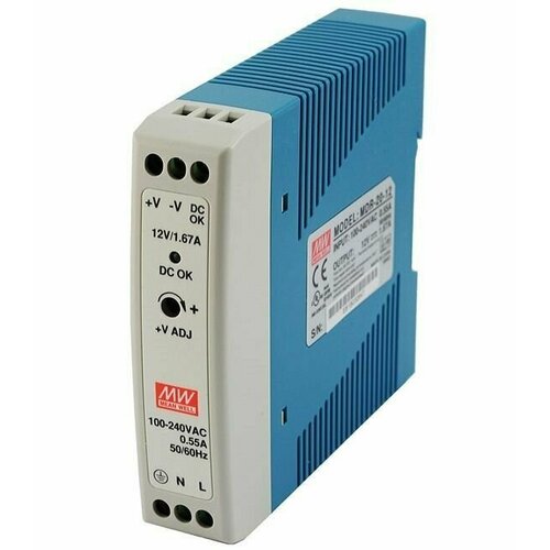 Блок питания модульный на DIN рейку 12в, 1.67а, 22.5*90*100мм, Mean Well MDR-20-12