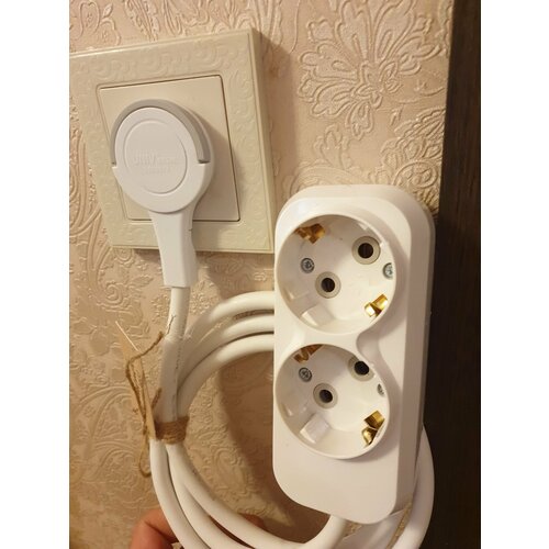 Удлинитель электрический с плоской вилкой 1 розетка, 1.5 метра (Белый)