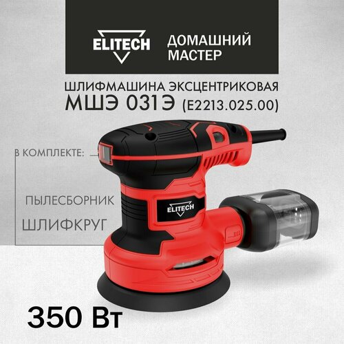 Шлифмашина эксцентриковая орбитальная Elitech ДМ МШЭ 031Э, от сети, 125 мм круг, 350 Вт.