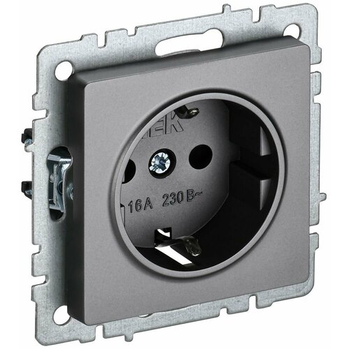 Розетка одноместная Сталь с заземлением без защитных шторок 16А IEK Brite