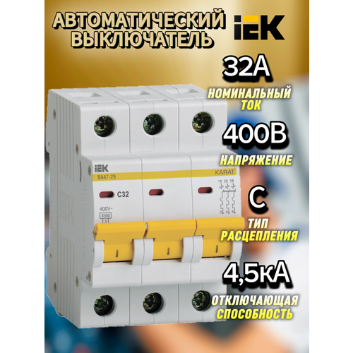Автоматический выключатель 3Р 32А (С) ВА47-29 4.5кА IEK, MVA20-3-032-C