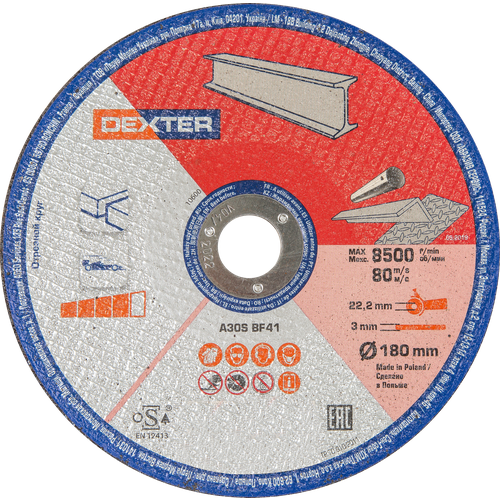 Диск отрезной по металлу Dexter Т41, 180x22мм