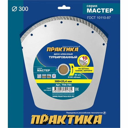 Диск алмазный турбированный Мастер (300x25.4/20 мм) ПРАКТИКА 794-784