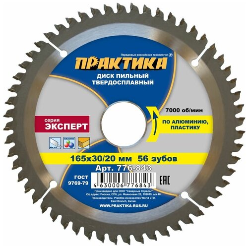 Диск пильный по алюминию (165х30/20 мм: Z56) ПРАКТИКА 776-843 15502611