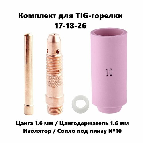 Набор 1.6 мм цанга, Сопло керамическое №10, цангодержатель, изолятор для TIG горелки (17-18-26)