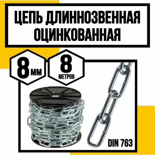 Цепь длиннозвенная DIN 763 8 мм 10м