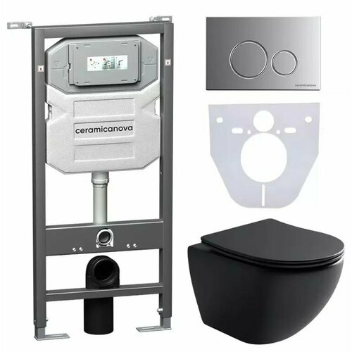 Комплект инсталляции с унитазом Ceramica Nova Metropol Rimless CN4002MB_1001B_1000 кнопка матовый