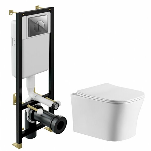Комплект 3 в 1 инсталляция Cersanit Black + Подвесной унитаз Cerutti Spa Marmolada aria CT7778 + кнопка хром