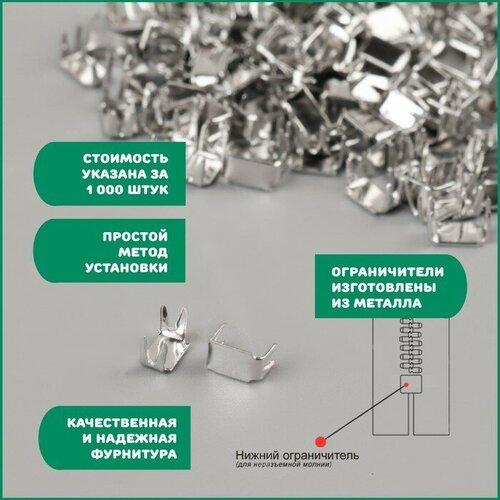 Нижний металлический ограничитель для молнии, №3, 1000 ± 20 шт, цвет серебряный