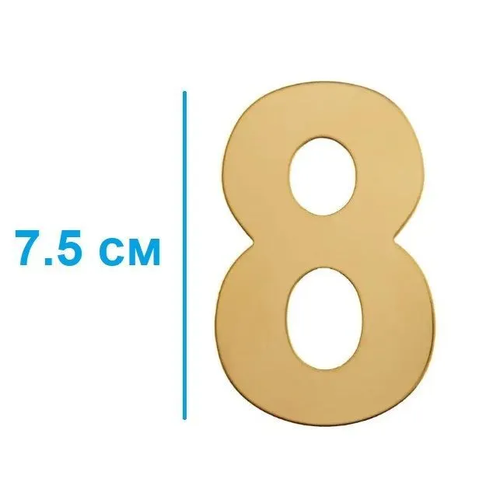нерж. стальЦифра на дверь Металлическая Самоклеящаяся Цвет золотистый Глянцевая поверхность, зеркальная полировка Высота 7.5 см Цифра 1