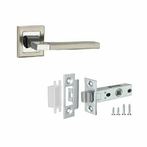 Дверная ручка NOVA QR SN/CP-3 матовый никель/хром Punto (Пунто) с защелкой межкомнатной L45-8 и 2 универсальные врезные петли 4B