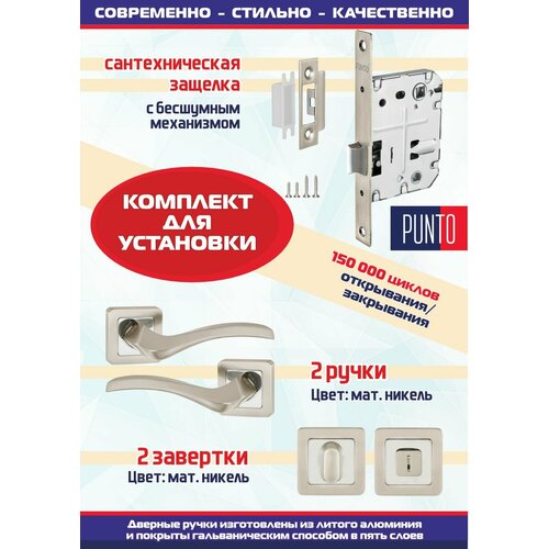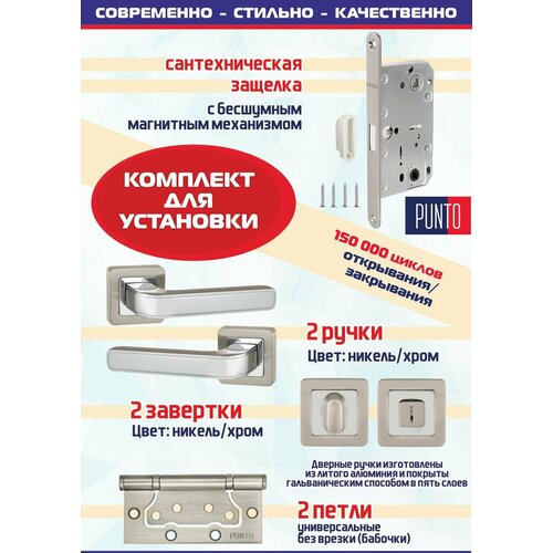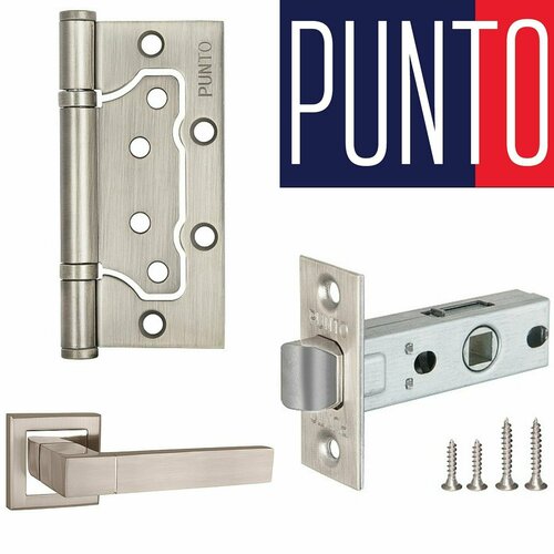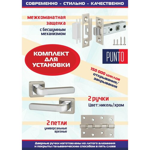 Комплект дверных межкомнатных ручек PUNTO с защелкой и универсальными врезными петлями, матовый никель/хром