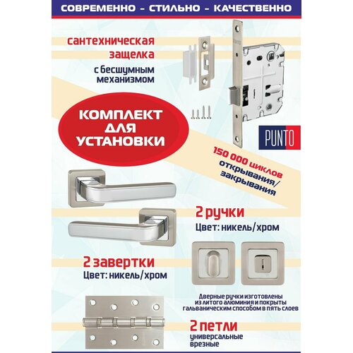 Дверная ручка NOVA QR SN/CP-3 матовый никель/хром Punto с защелкой сантехнической L72-50, ручкой поворотной BK6 и 2 универсальные врезные петли 4B