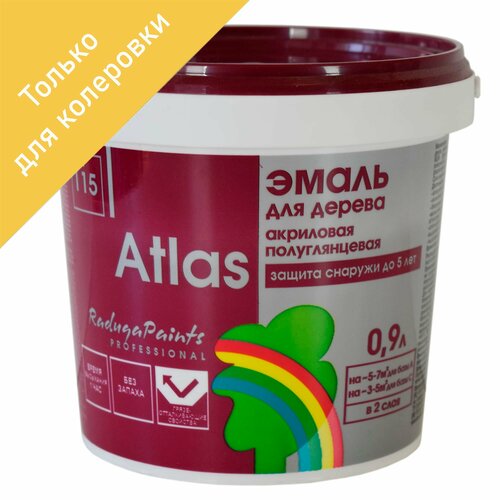 Эмаль для колеровки акриловая полуглянцевая Атлас 115 прозрачная база С 0.9л