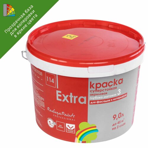 Краска для колеровки фасадно-интерьерная 114 Экстра прозрачная база С 9 л