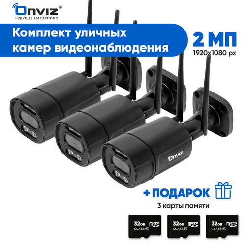 Комплект 3х уличных беспроводных WiFi IP камер видеонаблюдения 2Мп OnvizU550 с детекцией человека, динамиком, микрофоном