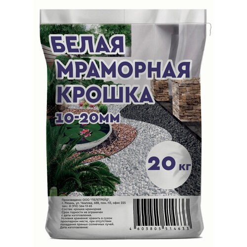 Мраморная крошка белая, камни декоративные для сада 20 кг