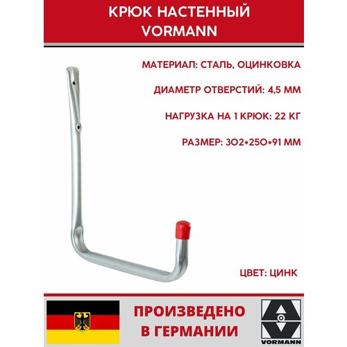 Крюк настенный U-образный Vormann 302х250х91 мм, оцинкованный, 22 кг, 001450 008 Z
