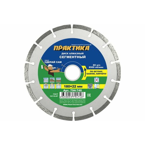 Диск алмазный сегментный Сделай Сам (180x22 мм) ПРАКТИКА 794-746