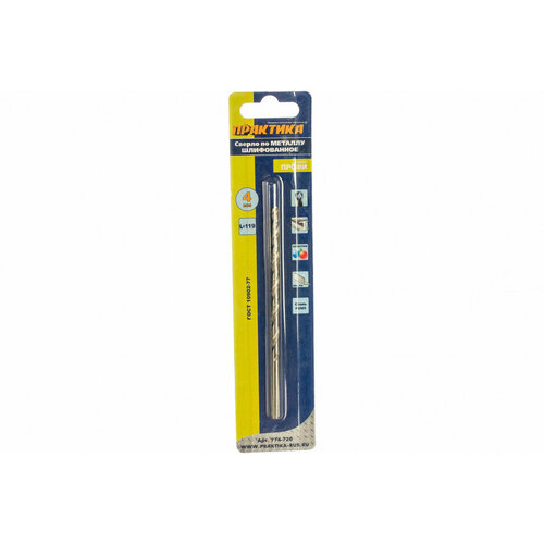 Сверло по металлу удлиненное (4х110 мм) ПРАКТИКА 774-726