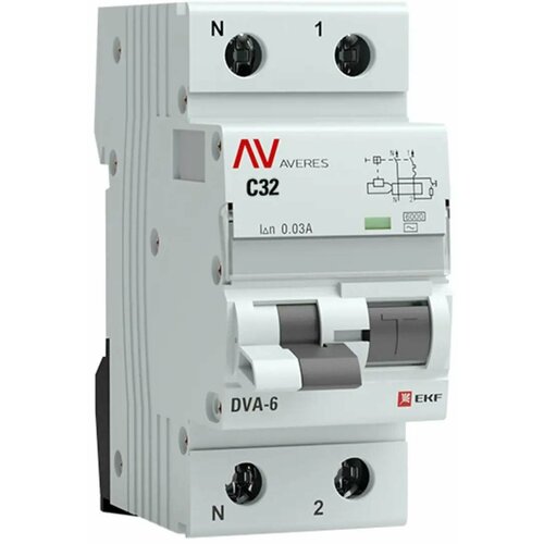 Дифференциальный автомат EKF Averes DVA-6 1P N C32 A 30 мА 6 кА AC rcbo6-1pn-32D-30-ac-av