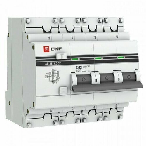 Дифференциальный автоматический выключатель (АВДТ) EKF 4-полюсный (3P+N) 63А хар. C 30мА тип AC 4.5кА эл, защ. 270В АД-32 PROxima (4,5 модулей) (комплект 2 шт.)