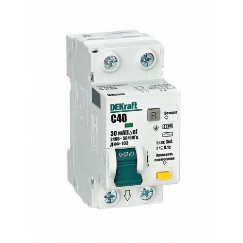 16056DEK Дифференциальный автоматический выключатель DEKraft ДИФ-103 1П+N 40А 30мА, тип AC, 4.5кА, C