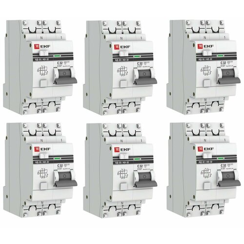 Дифференциальный автомат АД-32 1P+N 32А/30мА (хар. C, AC, электронный, защита 270В) 4,5кА EKF PROxima 6 штук