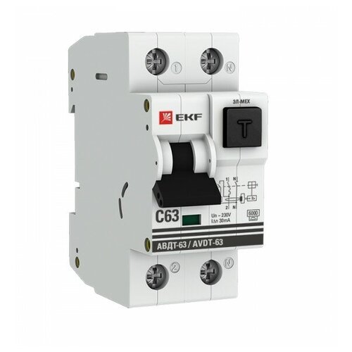 Дифавтомат EKF PROXIMA АВДТ-63N 16А (C) 30мА, тип AC, 1P+N (двухполюсный), 6кА, электронный