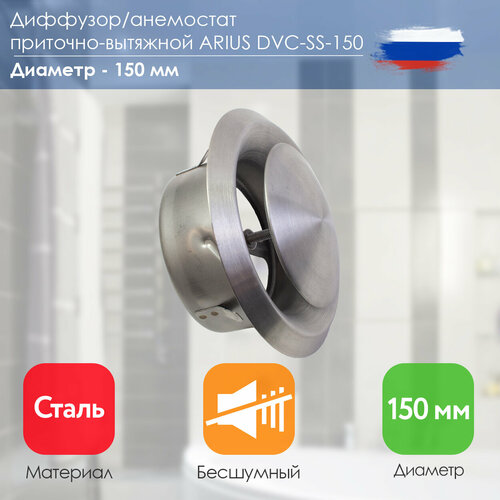 Диффузор/Анемостат приточно-вытяжной нержавеющая сталь DVC - SS - 150 (135482), 150 мм