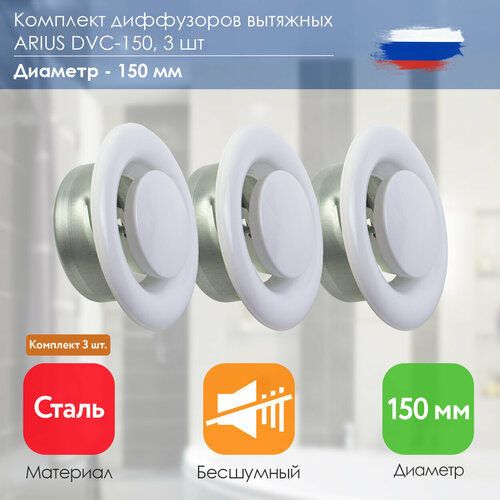 Комплект 3 шт. Диффузор/анемостат вытяжной ARIUS DVC-150 (арт. 135536), 150 мм, сталь, RAL9016