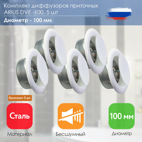 Комплект 5 шт. Диффузор/Анемостат приточный стальной ARIUS DVE-100 (арт. 135541), 100 мм, RAL 9016