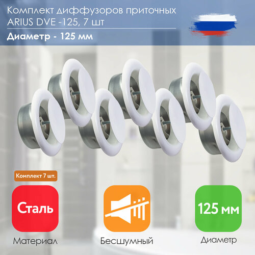 Комплект 7 шт. Диффузор/Анемостат приточный стальной ARIUS DVE-125 (арт. 135545), 125 мм, RAL 9016