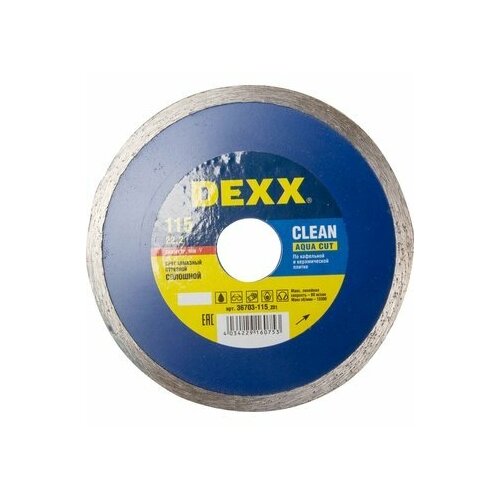 115мм алм мокрый рез DEXX Круг отрезной алмазный DEXX влажная резка, сплошной, для УШМ, 115х5х22,2мм