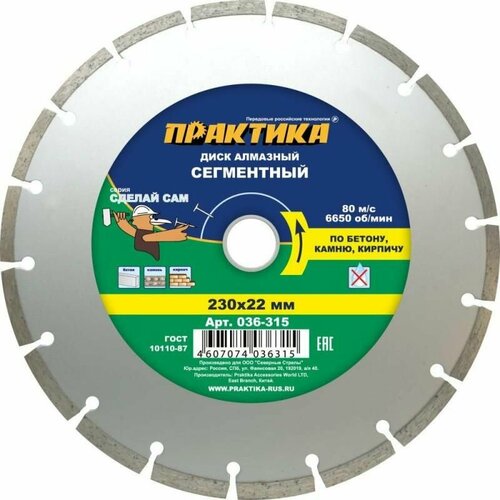 Диск алмазный сегментный, d 230х22.2 мм, по бетону/кирпичу 900071