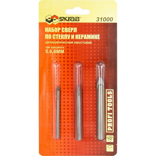 Набор сверл по стеклу и керамике цилиндрический хвостовик / 5, 6, 8 мм.