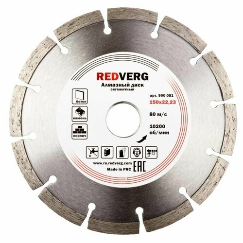 Диск алмазный сегментный, d 150х22.2 мм, по бетону/кирпичу 900051