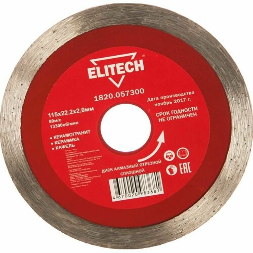Диск алмазный сплошной, d115х22.2х2 мм, д плитки 1820.057300