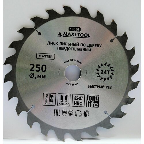 MAXI TOOL Диск пильный по дереву для циркулярных и торцовочных пил 250х24Тх32 мм
