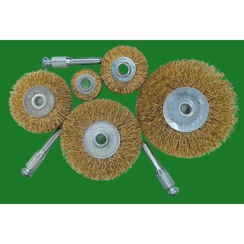 Щетки на дрель 25, 38, 50, 65, 75 мм + 3шпильки, набор 5 шт, по металлу, дереву