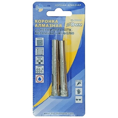 Коронка алмазная по керамике и кафелю 8 мм, 2 шт TRIO-DIAMOND 400008