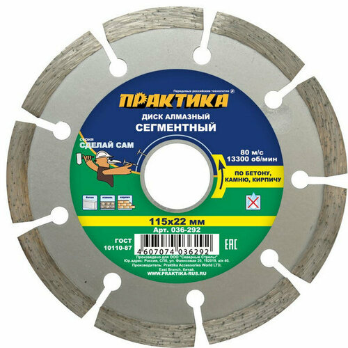 Практика Диск алмазный сегментный "Сделай Сам" 115 х 22 мм (1 шт.) отгружать кратно 5 шт (в пленке)