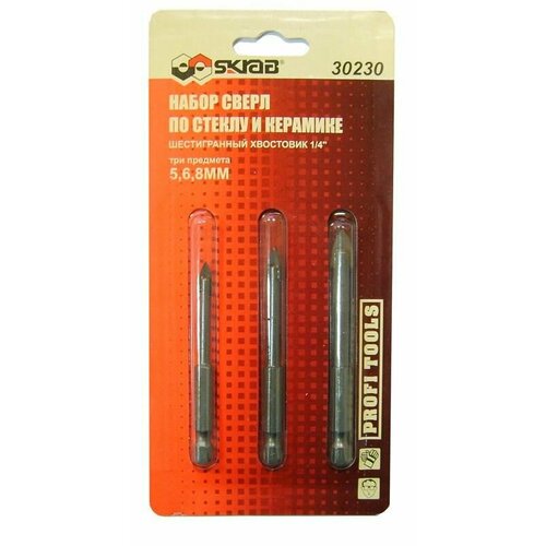 Сверла по стеклу набор 3 пр, шестигран. хвостовик